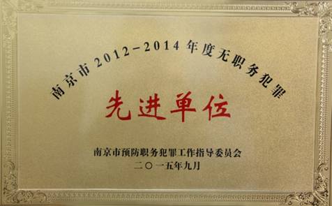 • 南京市2012——2014年度無職務(wù)犯罪先進(jìn)單位